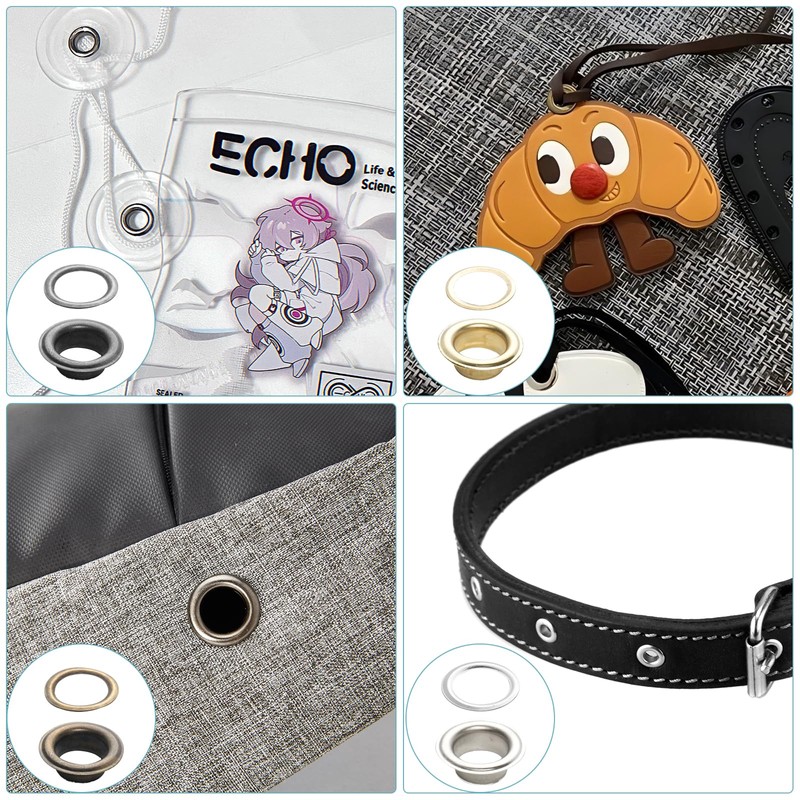 Sets Of Grommets: Grommets are made of high quality metal. Durable grommets are suitable for canvas, tarpaulins, tents, awnings, belts, garments, purses, bags and other fabrics.