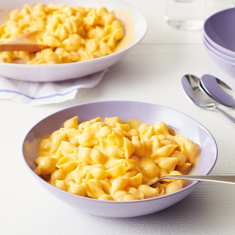 - Boxed mac and cheese with organic macaroni shells and a tasty four cheese sauce for a family dinner option with an added touch of decadence