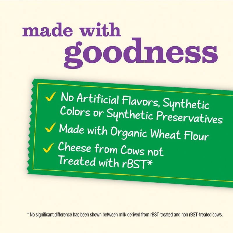 - CERTIFIED ORGANIC: Organic cheese from cows raised without antibiotics or synthetic hormones. Certified organic ingredients are grown without persistent pesticides.