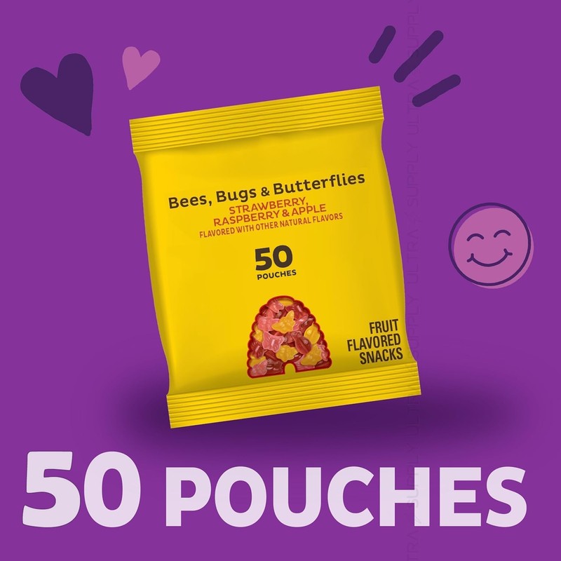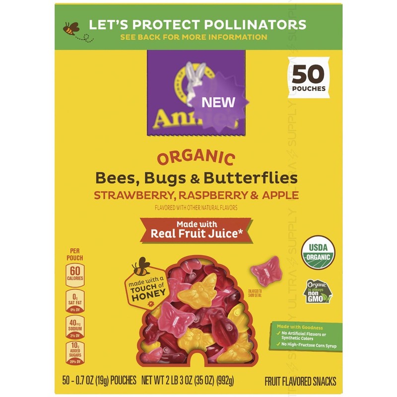 Annies Organic Bees Bugs & Butterflies Snacks, .7 oz each, 50-count – Strawberry, Raspberry, and Apple Flavors NET WT 2 lb 3 oz
