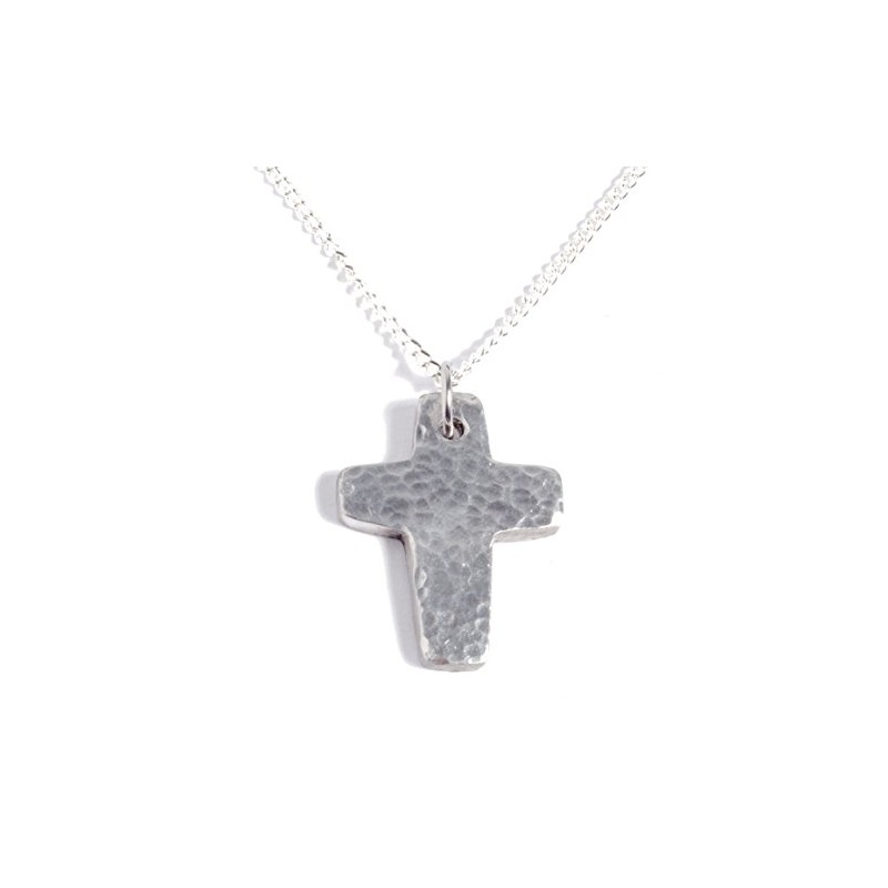 Anniversary 10th Wedding - Hammered Pure Tin Cross Pendant