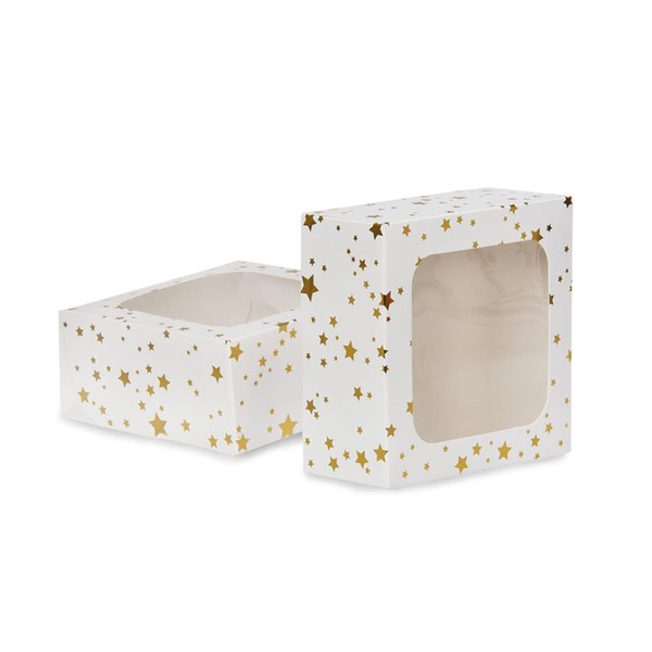 Anniversary House 2-pack Treat Boxes, Gold Star Foil Print, Cookie and Brownie Box, 7.5 x 16 x 16CM, J081,3.8 x 11.4 x 11.4cm (1.5 x 4.5 x 4.5")