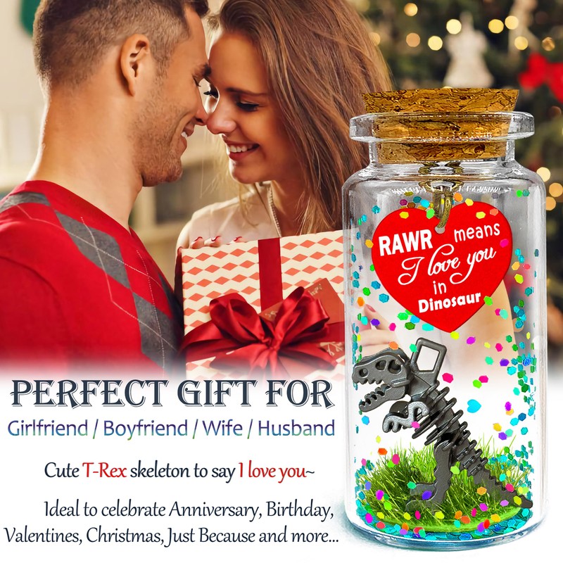 Anniversary Rawr Means I Love You in Dinosaur Valentines Gift, Romantic Message in a Bottle, Fun Birthday Christmas Presents Cute T-Rex Dino Gifts for Him Her Boyfriend Girlfriend Husband Wife Couple