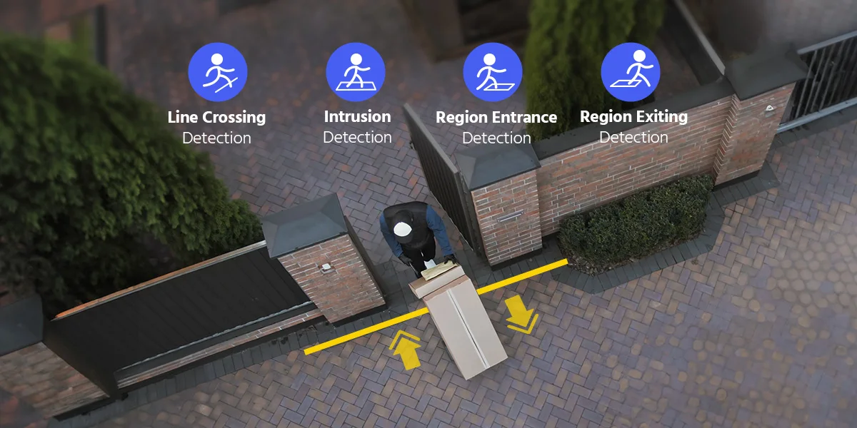 Line crossing detection, intrusion detection, region entrance detection, region exiting