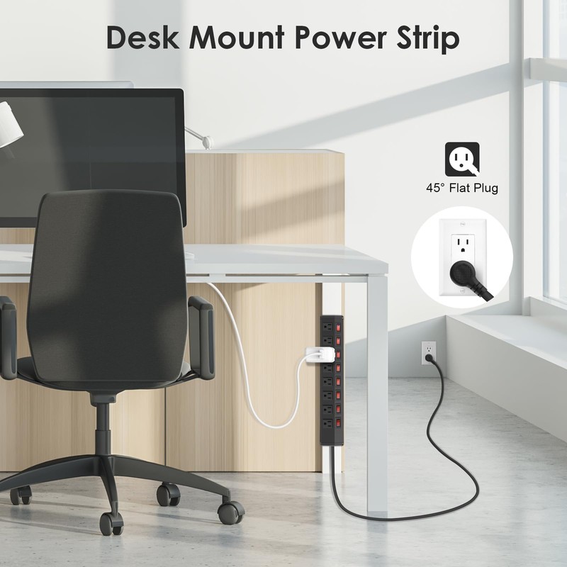 - Space-Saving Flat Plug: The flat plug of the multi switch power strip designed to fit easily in tight spaces, flexible to plug into the wall socket and won't take up too much spaces. Hide behind furniture like drawers, bookshelves, and desks.
