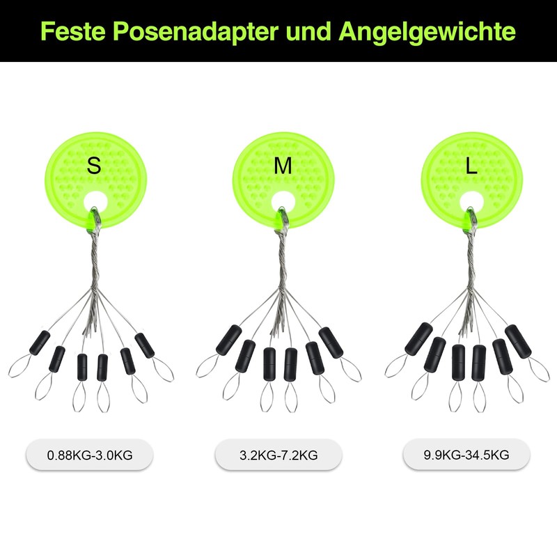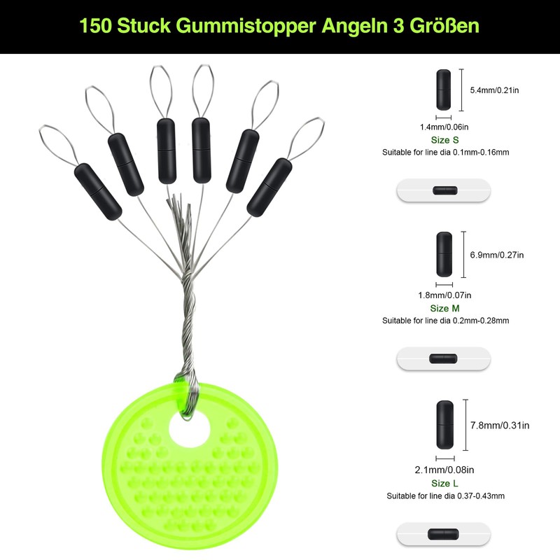 - Fixed float adapters and fishing weights: Our rubber stopper holds bobber adapters and fishing lead countersinks securely on the line, ensuring a stable position in the water. So you can more accurately mark and control the depth of your hooks and baits.