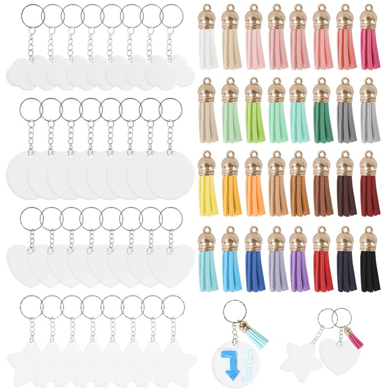 Quantity: 32 keychain blanks, 32 key rings, 32 bending rings, 32 colorful tassels