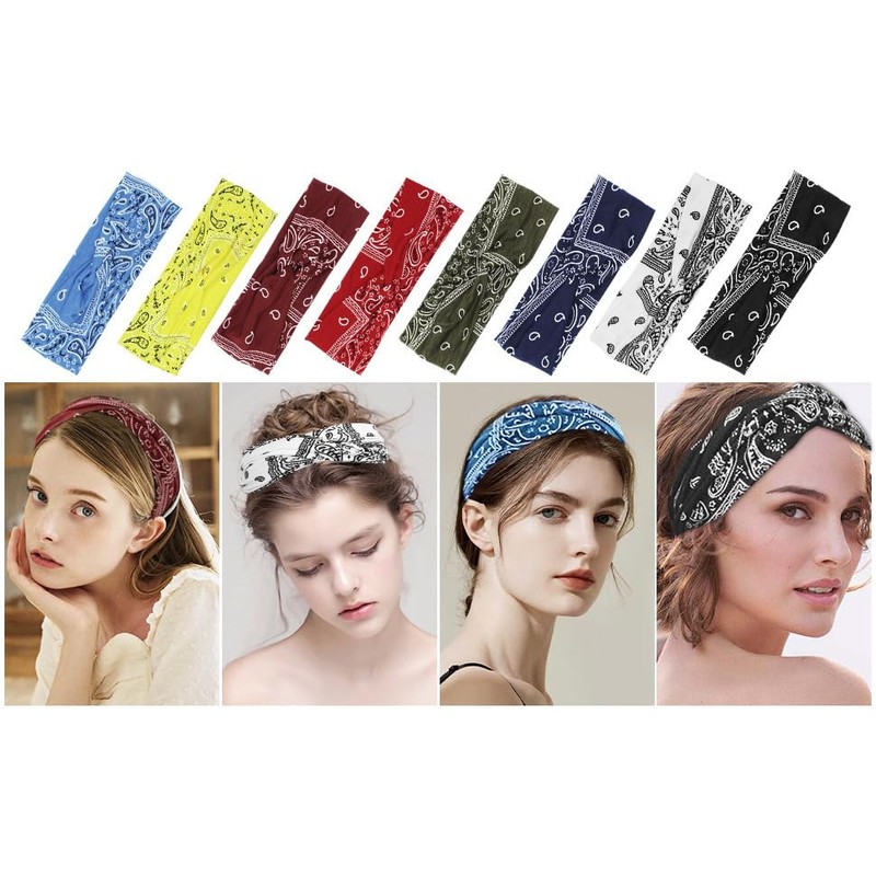 Annyswit Pack of 8 Women's Hair Bands, Soft & Elastic Boho Hair Band, High-Quality Headscarves for Women, Bandana, Women, Suitable for Women, for Oga Sports or as Face Wash Band (8 Colours)