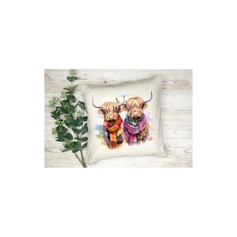 Anonymous Gifting Highland Cows in scarves printed cushion cover - perfect for Highland Cow lovers