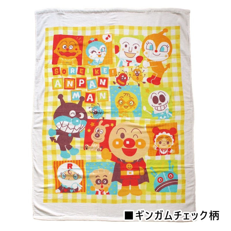 Anpanman TO-201000YE Shirring Nap Blanket, Towel Blanket, 33.5 x 45.3 inches (85 x 115 cm), Gingham Check Pattern