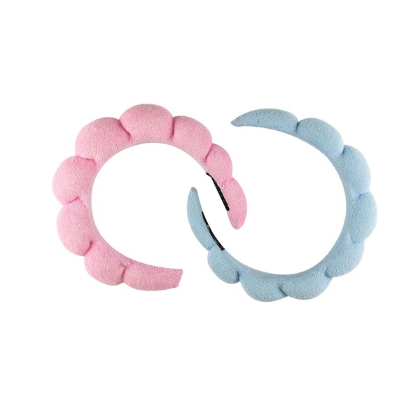 Anphly Cloud Sponge Headband With High Skull Top Velvet For Girls, Makeup Remover, Face Wash Headband,One Light Blue And One Pink Each