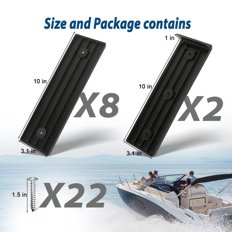 anpoole Boat Trailer Bunk Slides, Heavy Duty Boat Bunk Slides Pads, Easier Loading/Unloading with One-Man, 3"x10", Easy to Install, 8+2