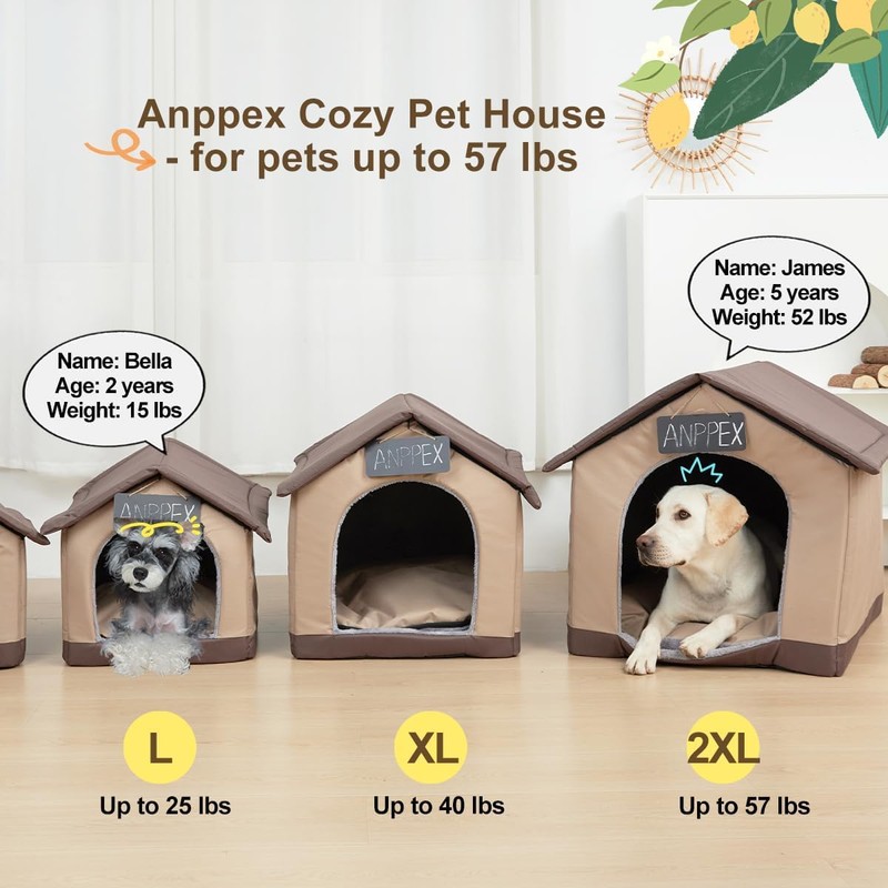 ANPPEX Large Dog House Indoor,2XL Size Indoor Dog House for Large and Medium Dogs,Covered Dog Bed with Cushion,Brown