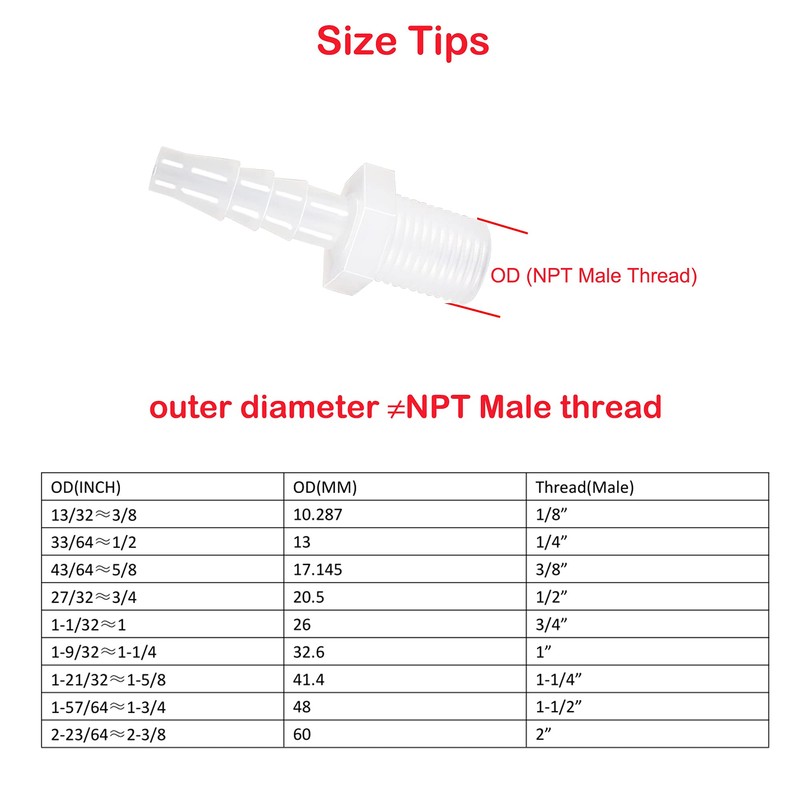 | Size: | 1/4" Barb X 3/8" NPT Male Thread |