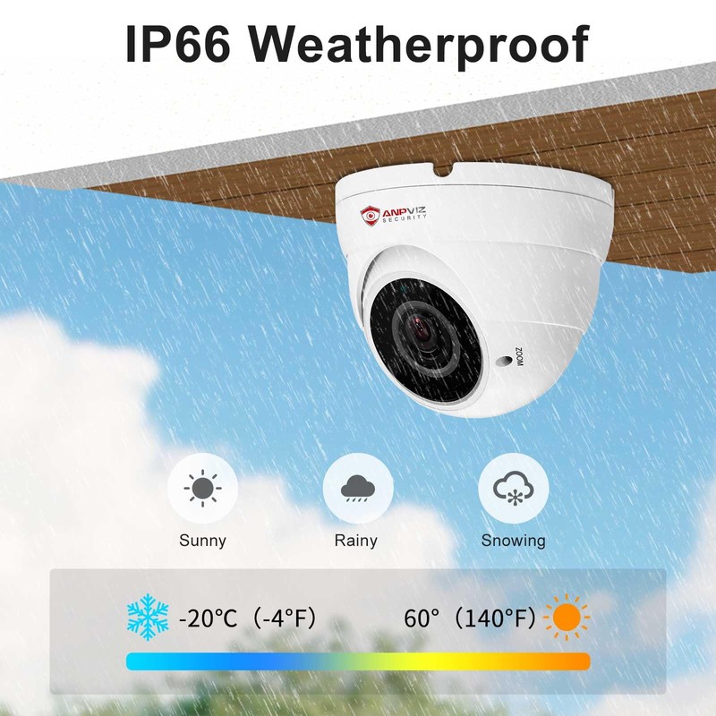 • 2.8-12mm Manual Varifocal Lens, Full Metal Case for Vandalproof and Weatherproof: Powerful infrared LED with 100 feet IR Distance and High-Quality ICR to ensure excellent image during the day and night. IP66 weatherproof metal housing provides protection from elements, including dust and sand, as well as harsh weather conditions, such as rain and snow.