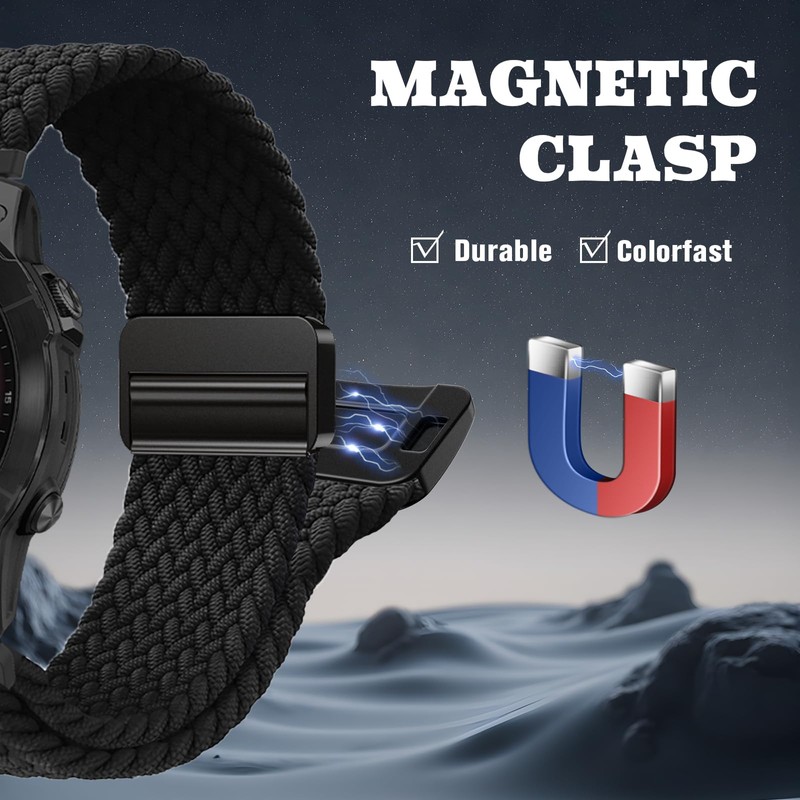 Anpzband for Garmin Fenix8 47mm Fenix 7/6/5 Band - Nylon Braided Magnetic Breathable Strap, 22mm Quickfit for Fenix 8 Fenix E 47mm/Fenix 7 Pro/Fenix 6 Pro/Fenix 5 Plus Replacement Wristband