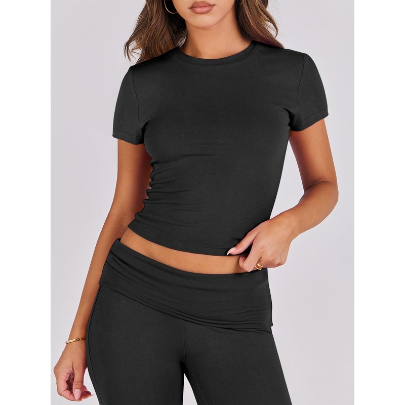 - Features - Women's lounge sets, Short Sleeve Cropped, Fold Over,Flare. This two-piece casual suit is very suitable for indoor and outdoor activities, such as daily casual wear, work, street, sleepwear, home wear, leisure, travel, dance, fitness, yoga.