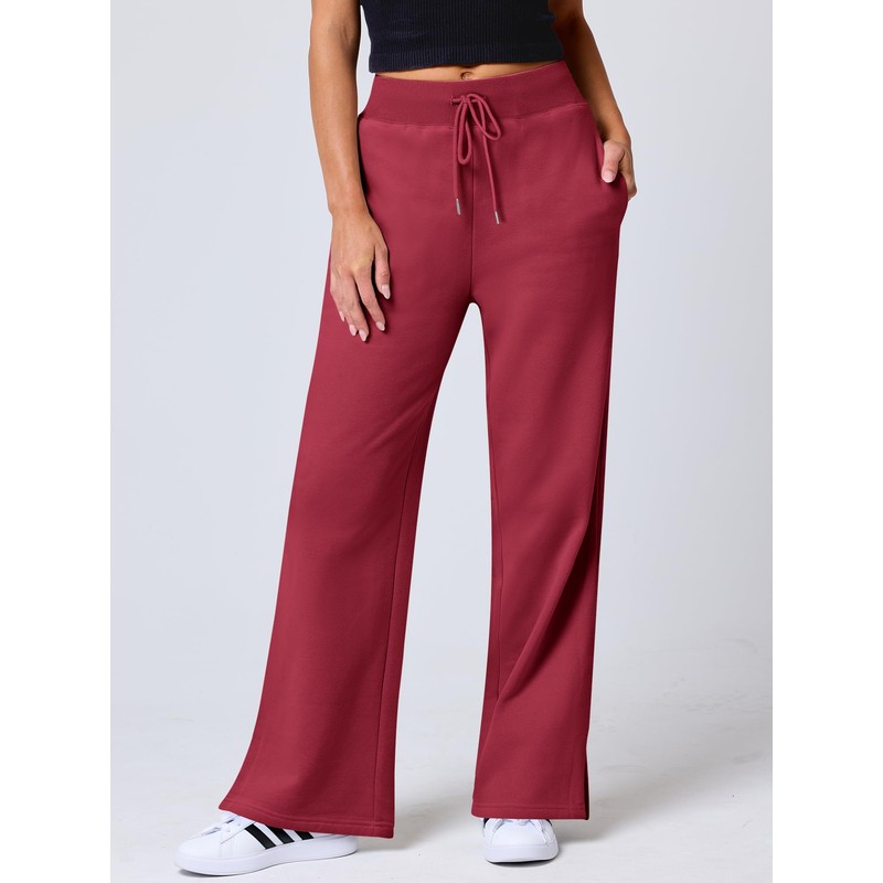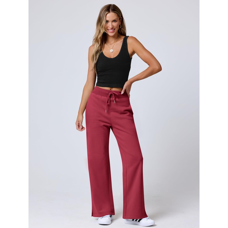 ANRABESS Women's Wide Leg Pants High Waist Drawstring Sweatpants Joggers with Pockets Red Large