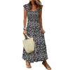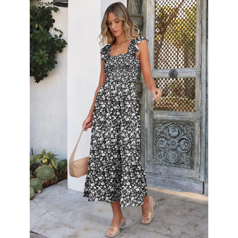 ANRABESS Womens Summer Sleeveless Maxi Dress Square Neck Smocked Boho Casual Ruffle Strap Flowy A-Line Long Beach Sundress Black Floral Medium