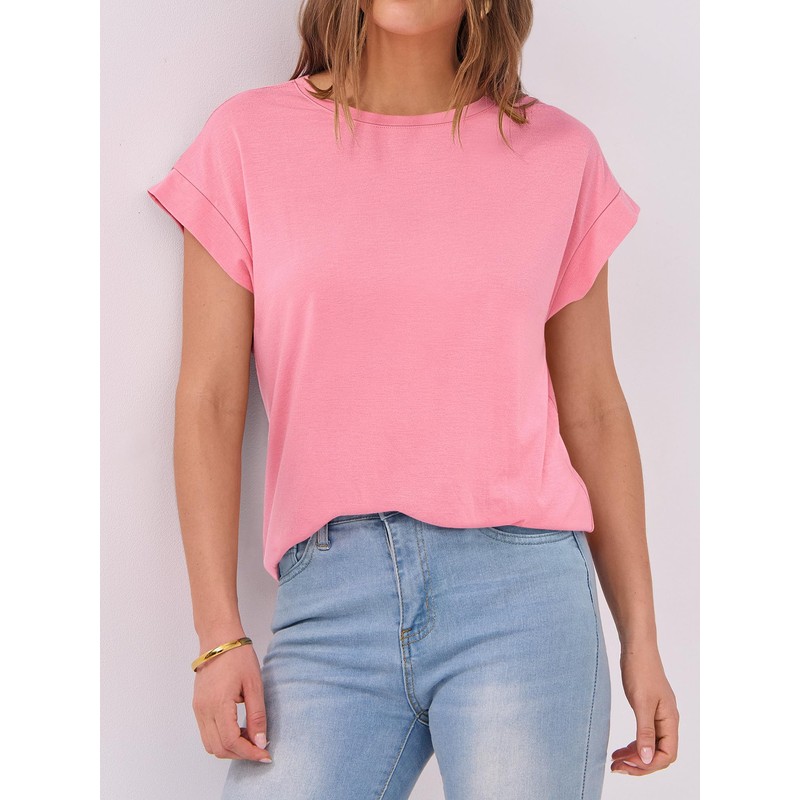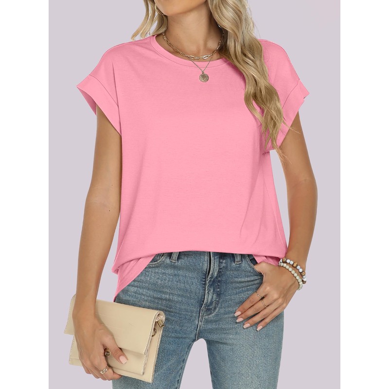 ANRABESS Womens Tops Summer Cap Sleeve Basic Tshirts Loose Fit Business Casual Tee Shirts Pink Medium