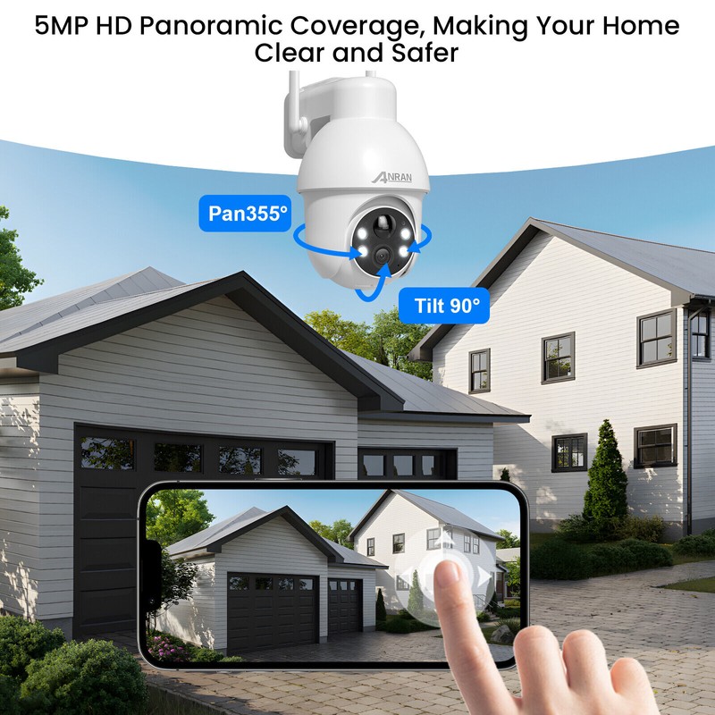 ANRAN Security Camera 5MP Battery Pan Tilt Outdoor PIR 2-Way Talk +Solar Panel