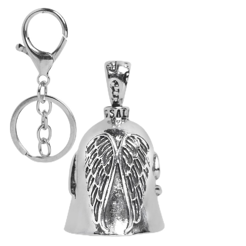 Anrbb Guardian Bell Keyring Set, Guardian Angel Motorcycle Bell Lucky Charm, Stainless Steel Motorcycle Bell Keyring, silver
