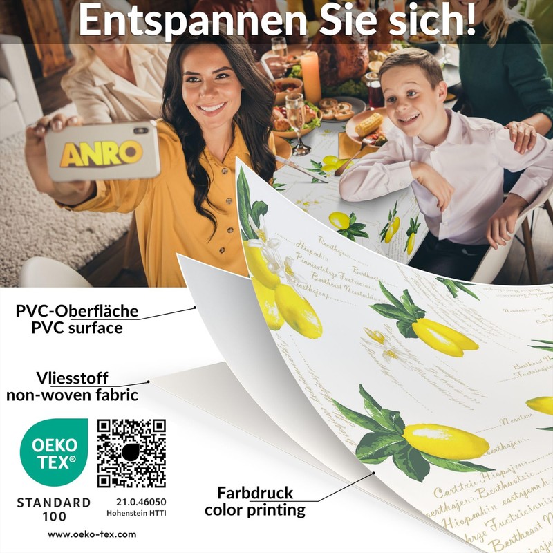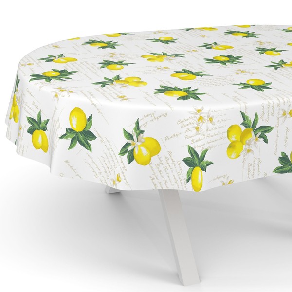 ANRO Oilcloth Tablecloth Washable Wax Tablecloth Garden Tablecloth Round Oval Square Oval 180 x 140 cm Cut Edge Lemon