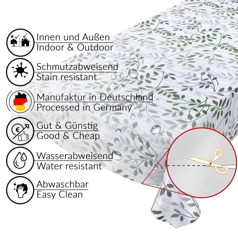 - This wipe-clean tablecloth is suitable for celebrations, parties, as well as for everyday use in the kitchen, dining room, garden, balcony or camping, and as a craft mat. It protects your table from dirt and scratches.