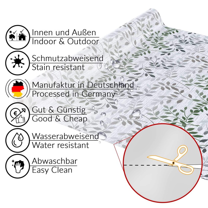 - Water-repellent, lotus effect, dirt-repellent, robust, easy to clean, non-slip, washable with a damp cloth, Reach compliant.