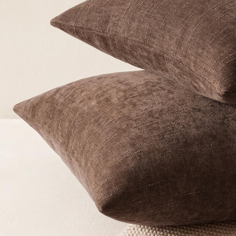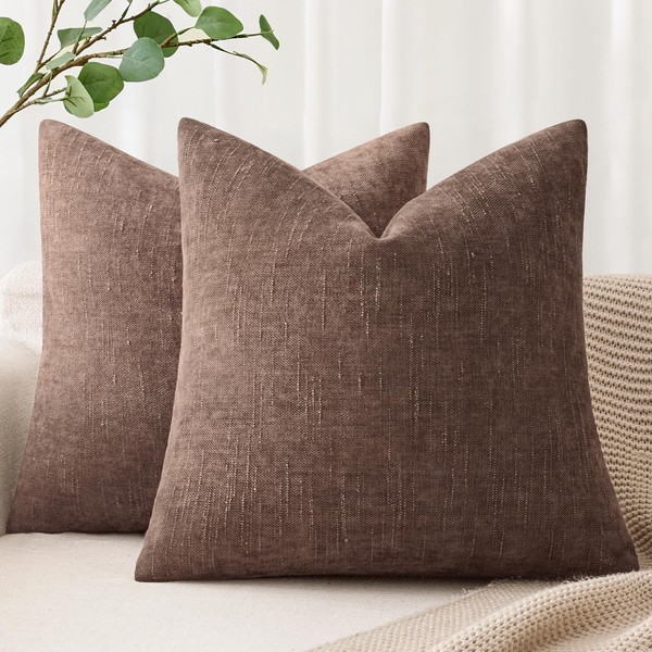 ANRODUO Pack of 2 Decorative Textured Throw Pillow Covers Soft Chocolate Euro Square Accent Solid Chenille Cushion Cover Cozy Farmhouse Pillow Case for Couch Sofa Bed Living Room Home Decor 22x22 Inch