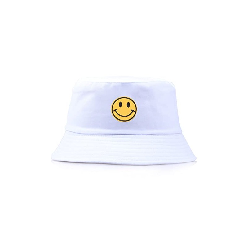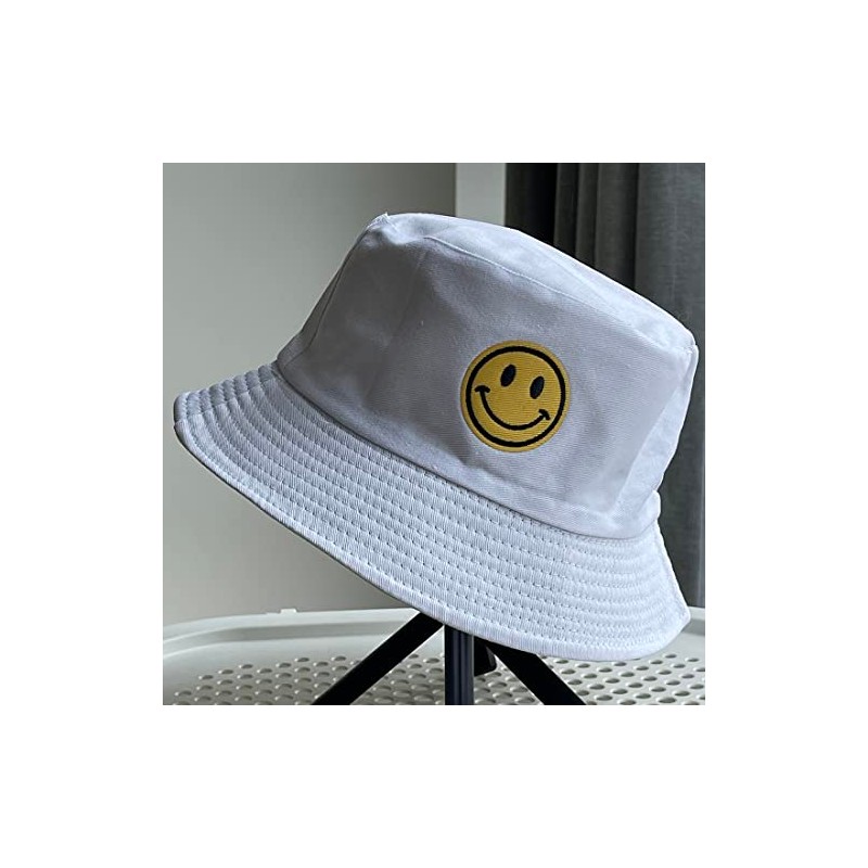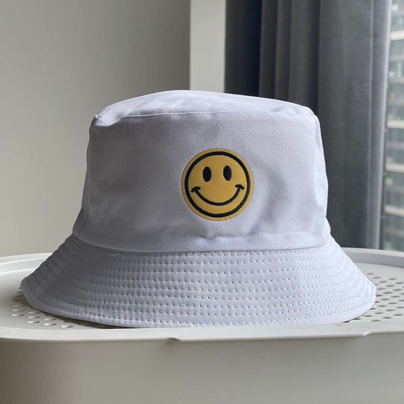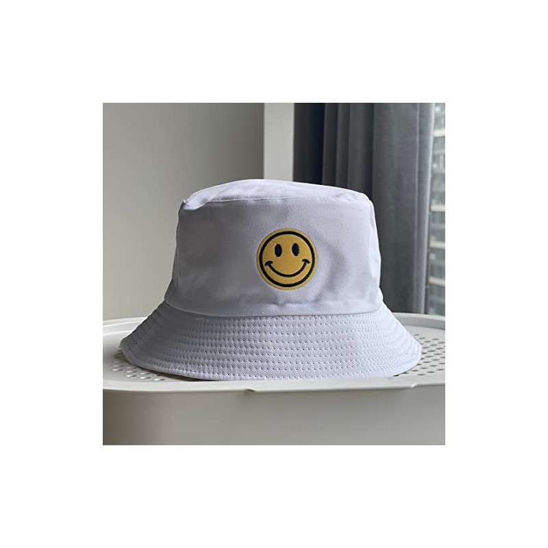 Anroll Unisex Smiling Face Embroidered Bucket Hats Sun Hat for Womens Men, White, One Size