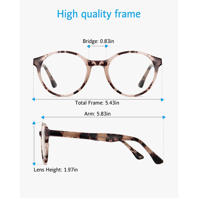 - RETRO ROUND STYLING:This style comes in three color options: classic black, crystal, and leopard. Featuring spring hinges, it fits any face shape perfectly. As a non-prescription blue light blocking glasses, it's an ultimate choice for women and men.