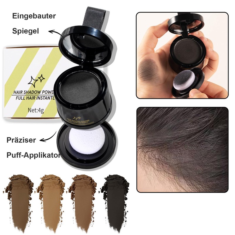 - EINFACHE ANWENDUNG: Taschenverpackung mit Spiegel, Haarpuder und Puderquaste, clevere 3-in-1-Box, zart und kompakt, perfekt für Handtasche, Rucksack. Dank des integrierten Applikators lässt sich das Haarpuder gezielt und einfach auftragen. Die kompakte Verpackung ist ideal für unterwegs.