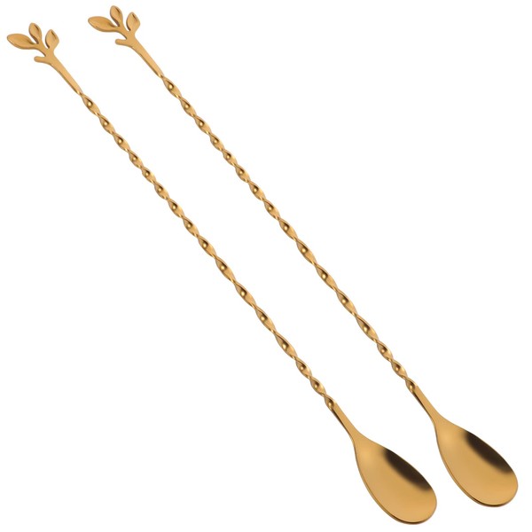 AnSaw 12-Inch Stainless Steel Mixing Spoon, 2-Pieces Gold Spiral Pattern Bar Spoons