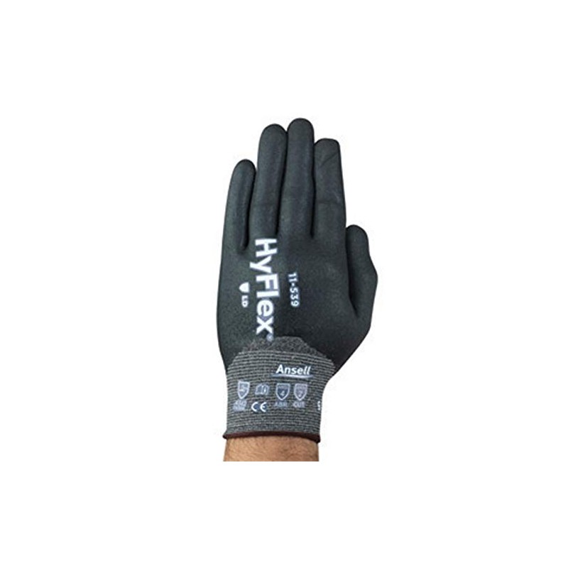 Ansell HyFlex 11-539 Gray 7 InterCEPT Yarn/Nitrile Cut Resistant Glove - ANSI 2 Cut Resistance - Nitrile Full Coverage Except Cuff Coating - 11-539/7 [Price Is Per Pair]