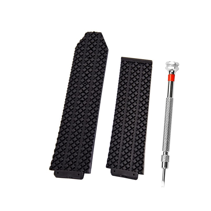 AnSettle 24mm Silicone Watch Strap with Replacement Tool for Hublot Big Bang (Black)