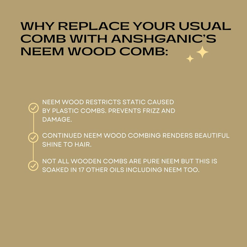 - Craftsmanship: The ANSHGANIC Neem Wood Comb is expertly crafted from premium neem wood. Neem wood has been traditionally used in hair care for centuries due to its ability to promote scalp health and improve hair quality.