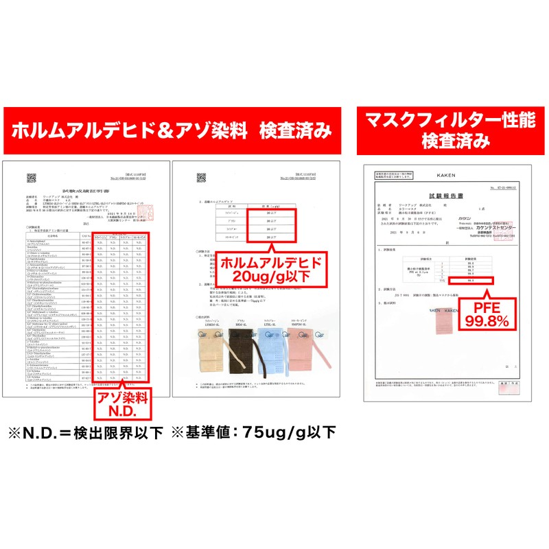 Average PFE value: Over 99% of particulate filtration efficiency tests set by the FDA The particulates used in testing are smaller than bacteria and 0.1μm equivalent to a virus.
