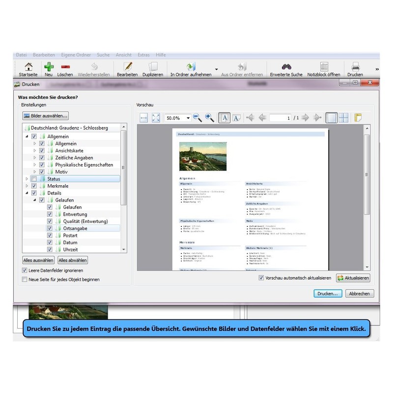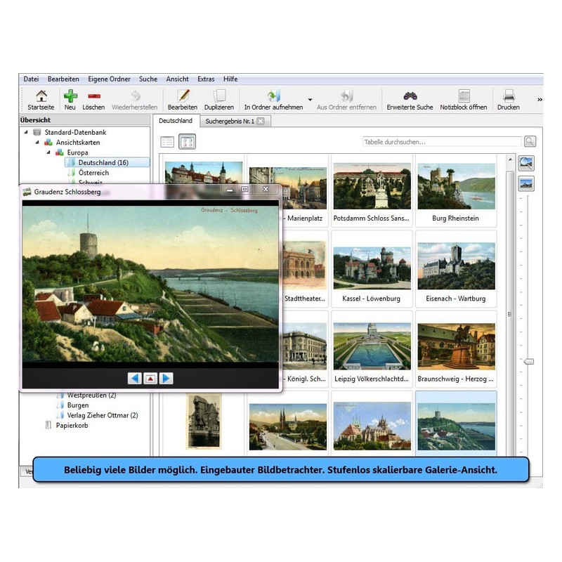 In case of damage, you also have proof of inventory for your insurance with this software. For collectors of postcards, there is no better program of this kind. See for yourself!