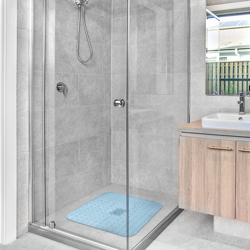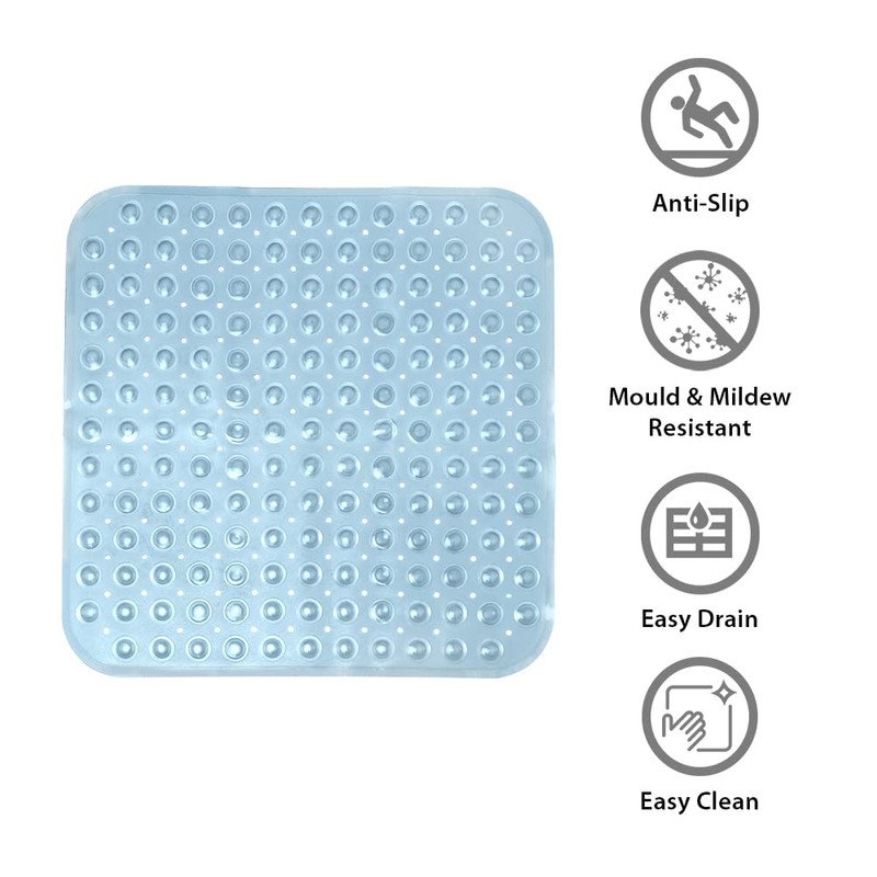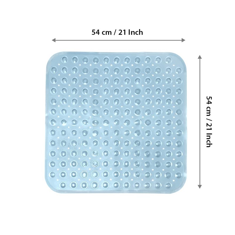 ANSIO® Shower Mats Non Slip Anti Mould Bath Mat for Bathroom Bathtub PVC Shower Mat with Drain Holes & Suction Cups Machine Washable 54 x 54 cm / 21.2 x 21.2 inches -Transparent Blue)