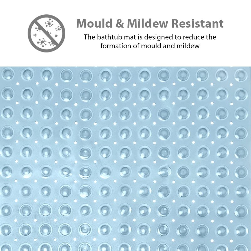 - ANTI MOULD & ANTI-MILDEW: The bathtub mat is designed to reduce the formation of mould and mildew. It is recommended to dry the bath mat upside down on the side of the bath tub or on a towel rack to dry after each use