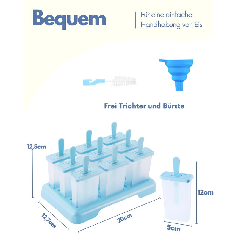 ANSMIO Ice Pop Molds 9 Popsicle Molds Ice Cream Moulds Reusable DIY Ideas Ice Lolly Stick - Comes with a Cleaning Brush and Funnel(Blue)