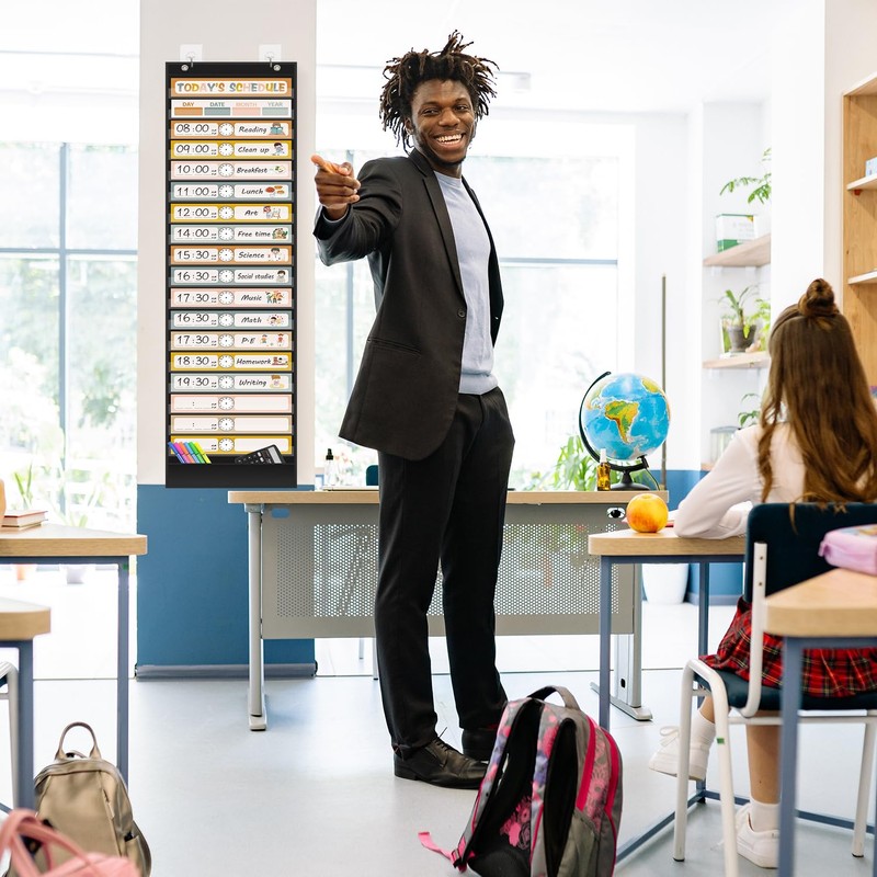 ANSTROUT Boho Daily school schedule pocket chart is very useful for teachers and parents to schedule and keep orders, strengthen sense of time of kids and preschoolers.easy to hang on the wall or door to save your space and make classroom and home teaching entertaining.use it to play games with kids, make your lessons are more interesting, enhance kids studying fun.