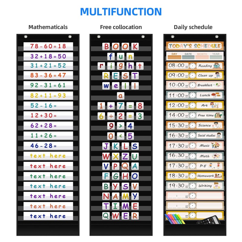 - ※【Lasting Safety Material for Kids】This Boho Daily school schedule pocket chart is made of 420D oxford that is long-lasting. the 18 pockets are eco-friendly and see-through PVC, and the bottom of storage bag is made from lasting nylon fabric to organize cards and marker pens.