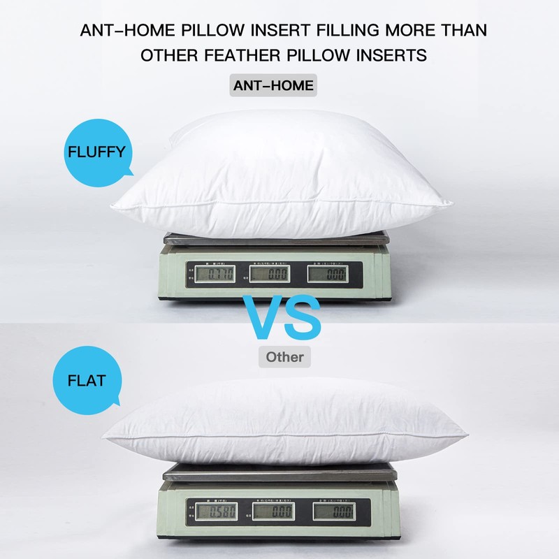 - 【Premium Quality】ANT-HOME pillow inserts are filled with duck feather and duck down. Down feather pillow have perfect breathable and softness, comfortable, durable and skin-friendly. It can be optimally supportive for your head, shoulders, waist and back.