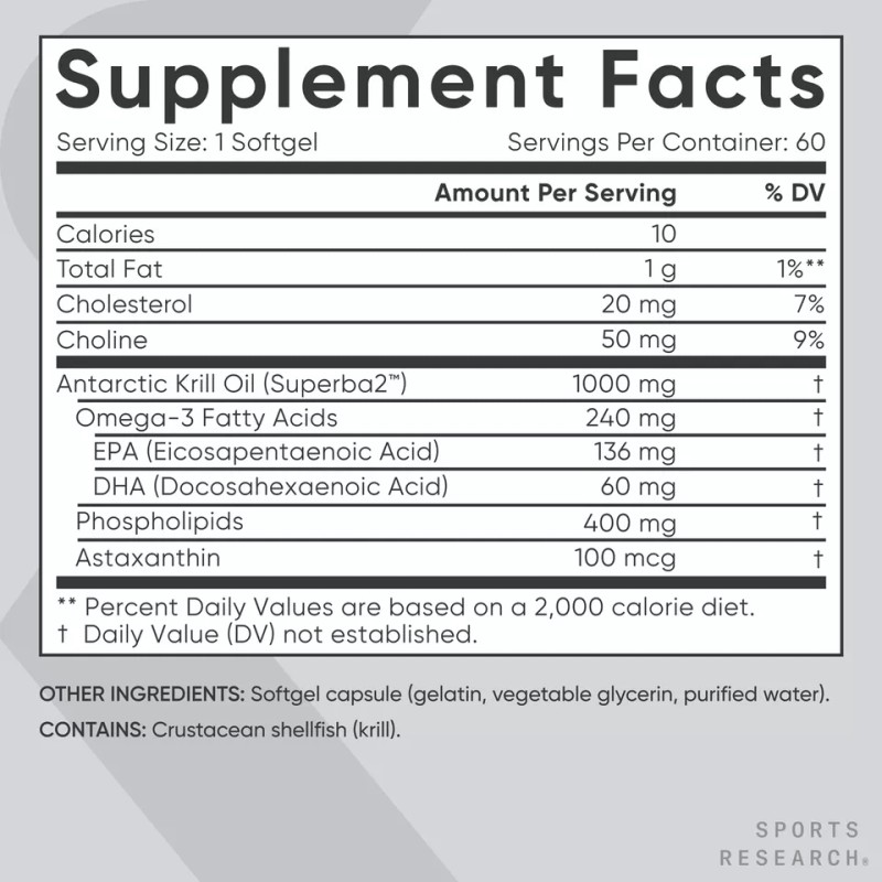 🦐 Sports Research Antarctic Krill Oil - 1000mg 🦐