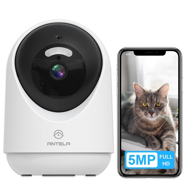 ANTELA 5MP Indoor Surveillance Camera, 2.4GHz/5GHz WLAN Camera, 2-Way Audio, 355°/180° Swivel, IR Night Vision to 10 m, Compatible with Alexa and Google Home