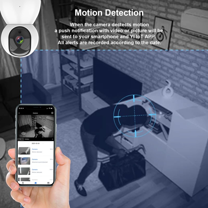 - 1080P FHD & Night Vision: The image of the surveillance camera is clear and smooth and can be controlled on the YI IOT app. The camera can provide a night vision distance of 9 m. The camera works with WiFi 2.4 GHz / 5 GHz.