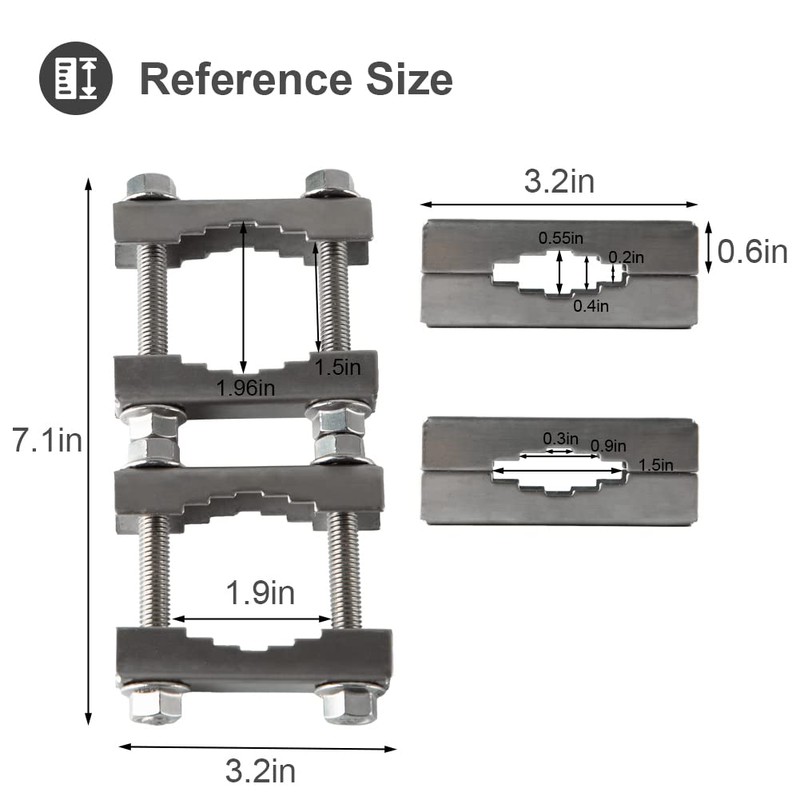 - Adjustable Size: The antenna mast clamp length is 7.1'', V jaw bracket size: 3.2'' x 0.6'', bolts size: 0.8''*0.4'', minimum bracket range size 0.2'' x 1.5'', separate the two side of bracket to equal range, the maximum range size 1.96'' x 1.5''.