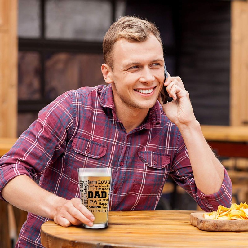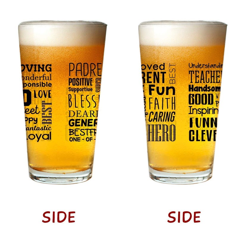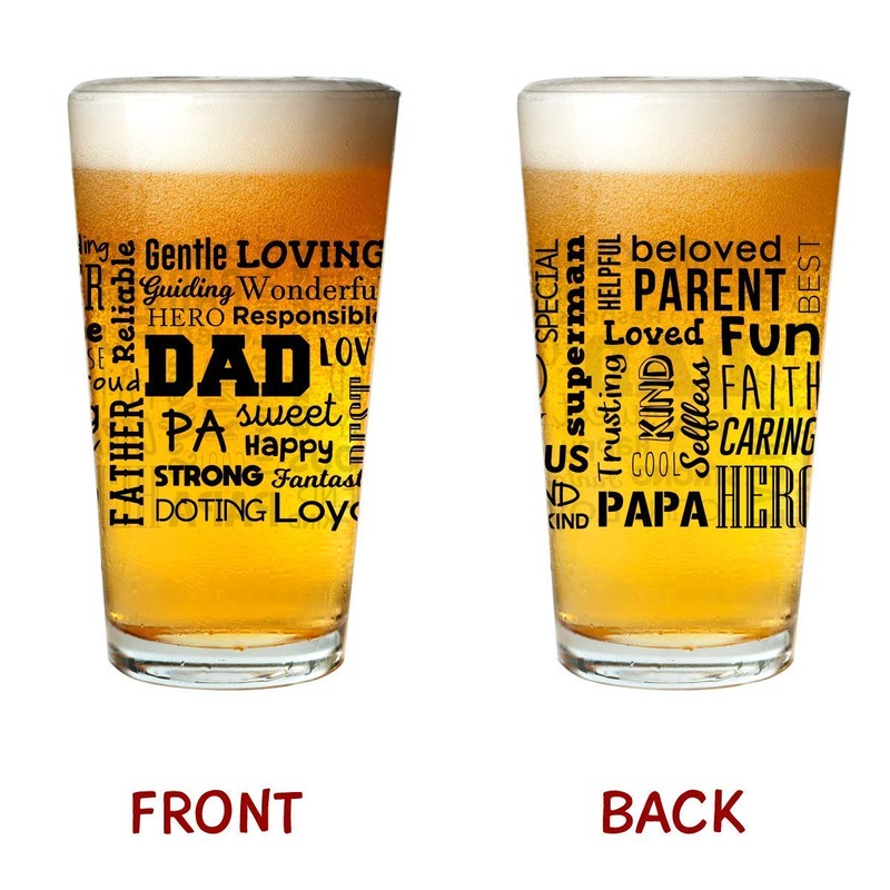 - Celebra a papá: este 16 onzas El vaso de cerveza para papá está diseñado como una forma de expresar gratitud a tu devoto padre y cuenta con mensajes amorosos para recordarle lo que significa para ti